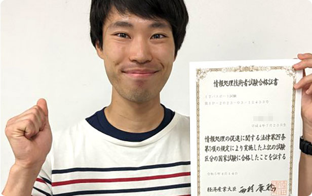 会社のITガバナンス強化のため、2023年5月時点で従業員全員がITパスポートまたは上位資格に合格しています。これはお客様の大事な個人情報を守るため、延いては会社を守るためであり、従業員全員が学習・取得しております。